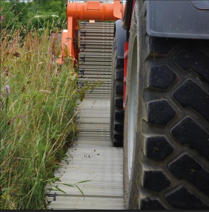 Während Stahlplatten bei langen Trassen logistisch schwerfällig sind, überzeugt Trackway durch schnelle Verlegung und geringes Transportgewicht.